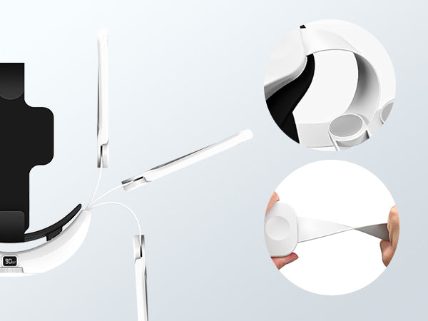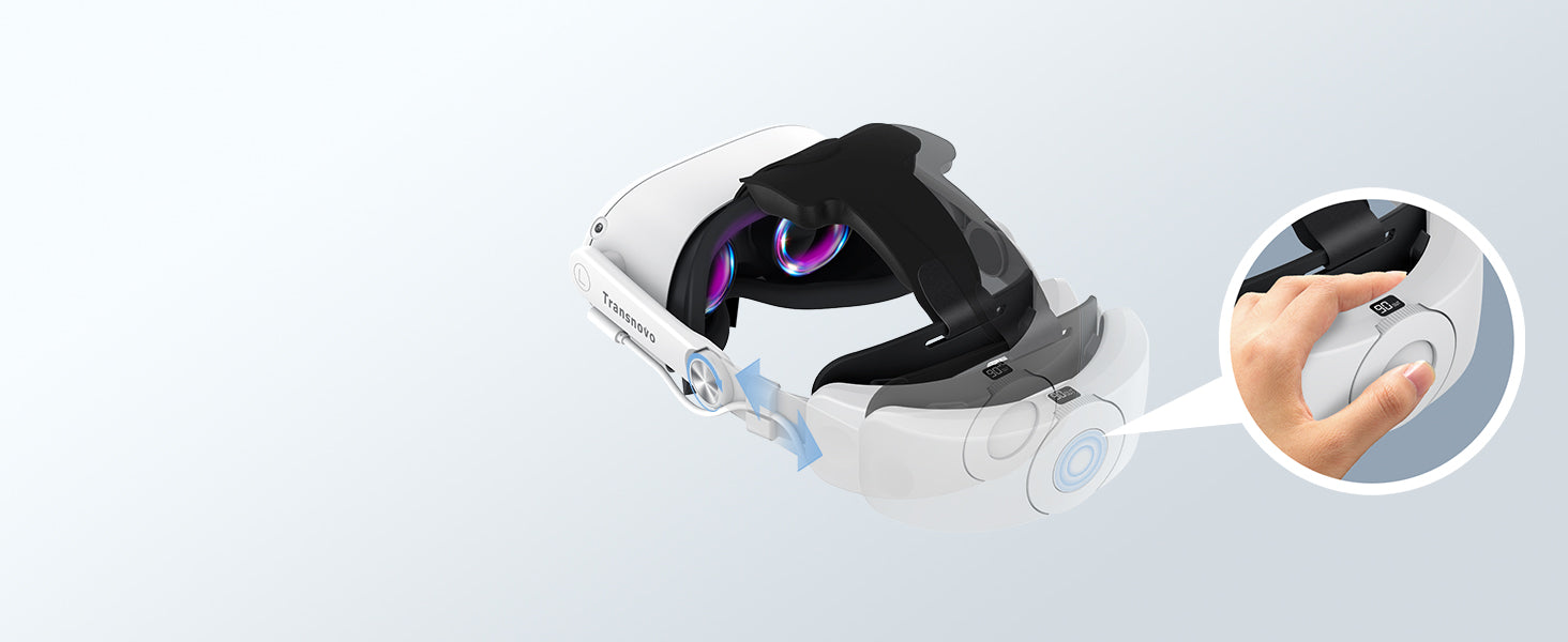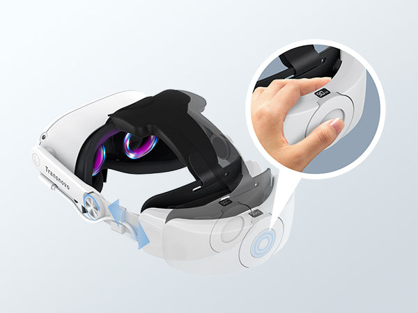 TRANSNOVO Oculus Quest 2 head strap features 360° rotatable knob for easy size adjustments and secure fit. Its one-click release button and quick-detach design make swapping strap simple and fast.